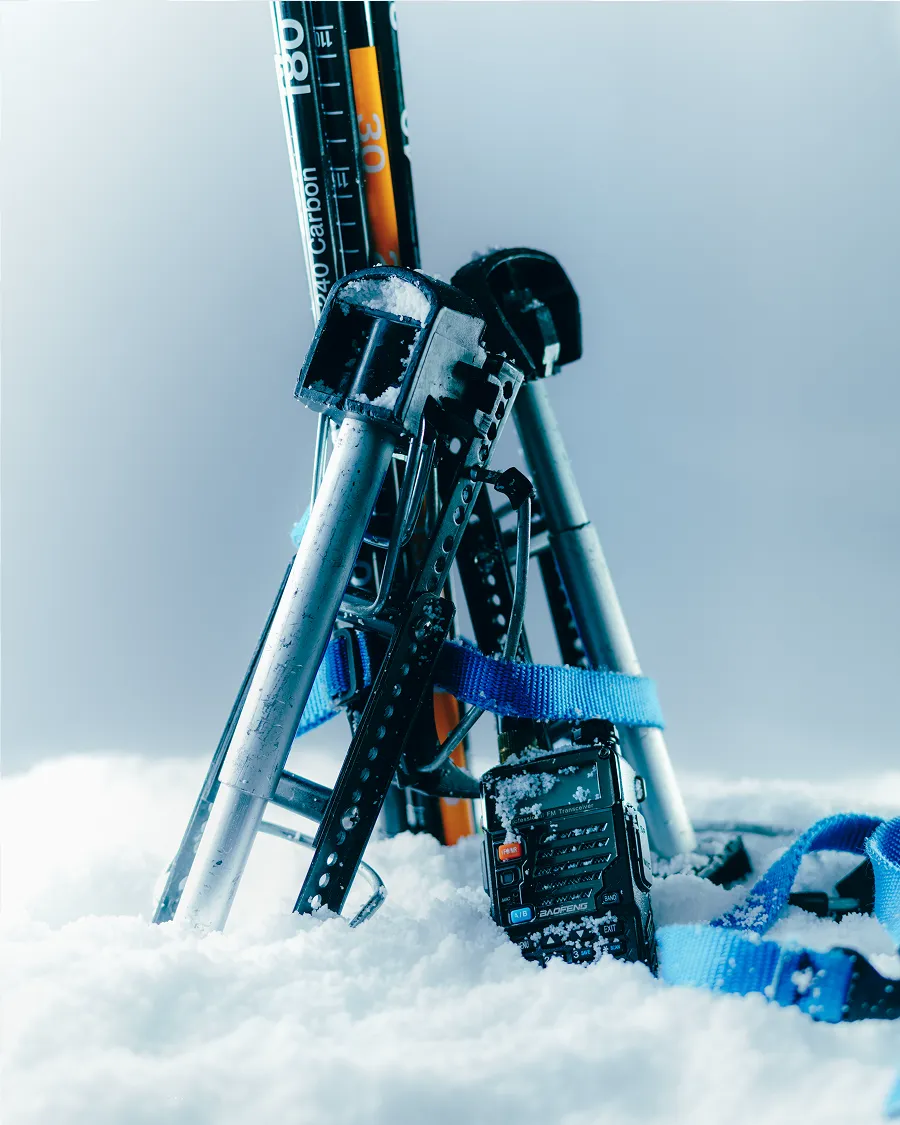 雪山へ持って行くギアは、「ひとつでも欠けだらダメだし、もうひとつ多くても要らない」という、必要最低限であり完璧なラインナップ。バックカントリーを始めるにあたり、ビーコン、プローブ、シャベルは必須アイテムだ。