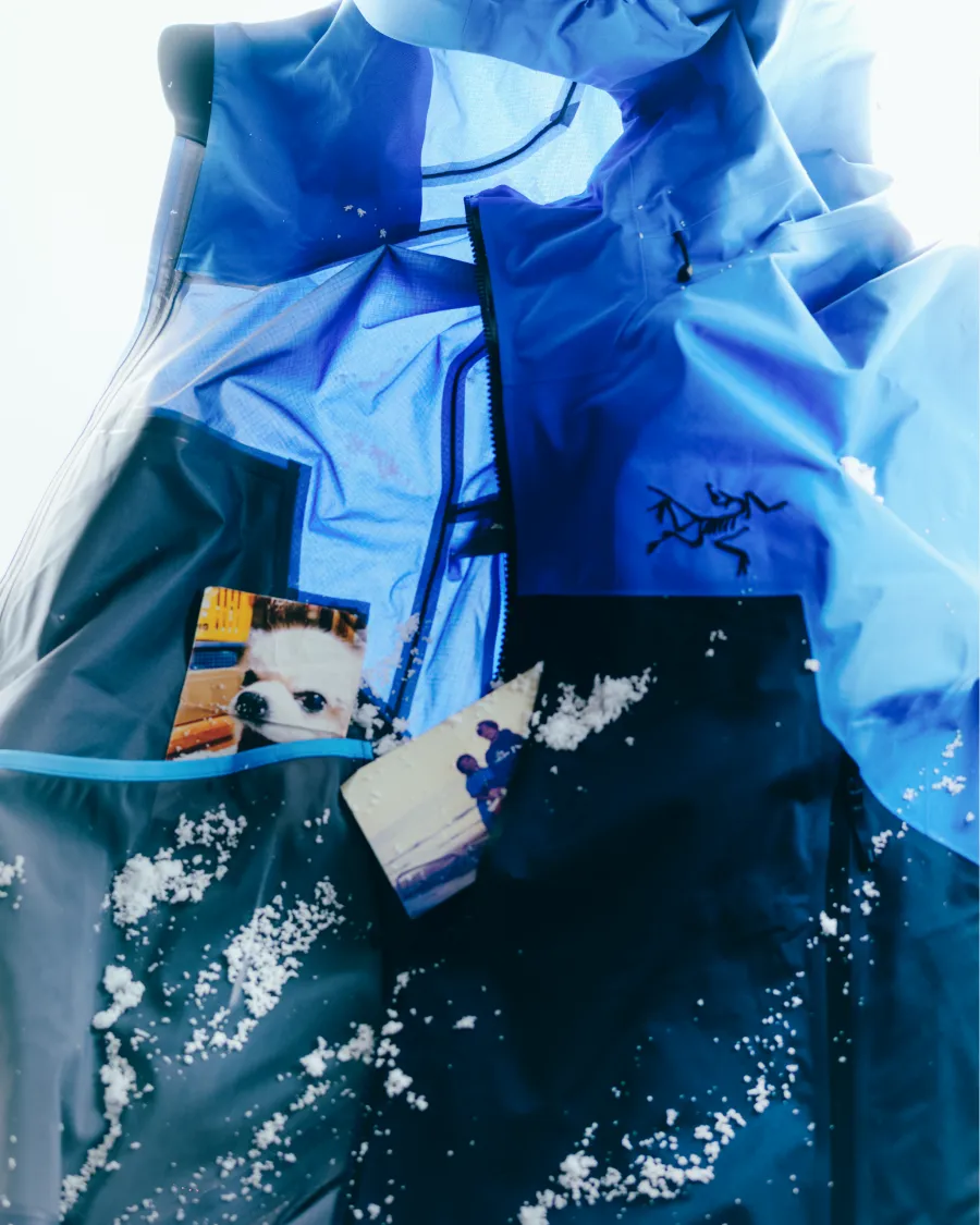 「元気をもらえる」お守りとして、ラッシュ ジャケットの胸ポケットに家族写真を入れて。程よいシルエットを保ちつつフィット感のある、ラッシュ ジャケットの着心地が気に入っているという。